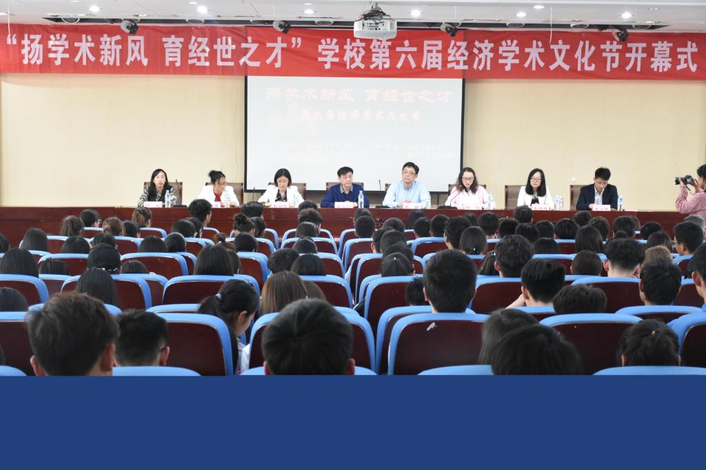 (通讯员:田永� 白战杰)4�19日下�14:30,由校学生工作部(处)、校团委、经济学院主办,经济学院团委、学生会承办的“扬学术新风,育经世之才”学校第六届经济学术文化节开幕式于圣井校区敏行楼B5101多功能报告厅举行。经济学院院长董长瑞、党委书记姜伟,校学生工作处副处长董瑞华、校团委副书记甘超,经济学院学工办主任兼团委书记周新秀、党委秘书李冰封,辅导员付雯、朱海林老师出席�2016�2017级学生到场参加。开幕式由周新秀主持�