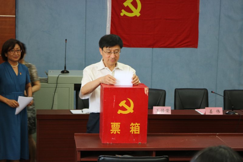 姜伟主持召开大会第二阶段会议�第二阶段的议题是:选举中共山东财经大学经济学院新一届委员会委员。在正式选举前,工作人员宣读《中国共产党山东财经大学经济学院党员大会选举办法(草案)》和新一届委员会候选人预备人选基本情况,并且由全体与会人员表决通过。经过民主差额选举,根据全体与会人员的投票结果,姜伟、仵颖涛、董长瑞、王传荣、高峰、彭留英、齐杨等7名同志当选为经济学院新一届委员会委员�