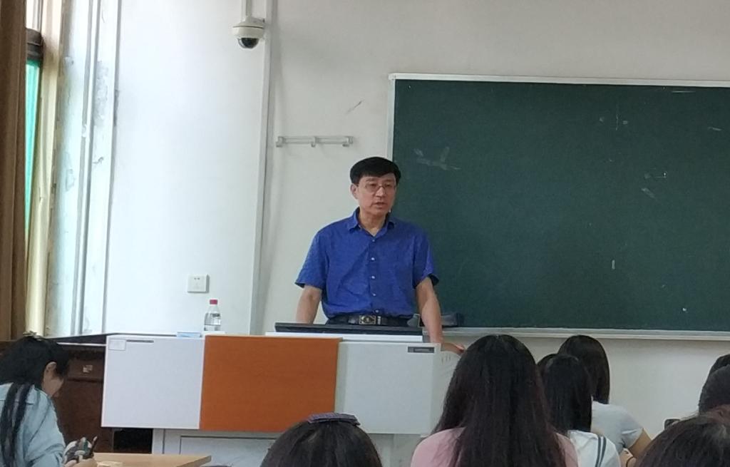 2019�9�16日下午,山东财经大学经济学院院长董长瑞于舜耕校区教学楼3303�2019级研究生新生讲授“开学第一课”,鼓励学生“立信仰有所信、学有成有所为、炼心志有所守”,经济学院全体研究生新生认真聆听研究生第一课�