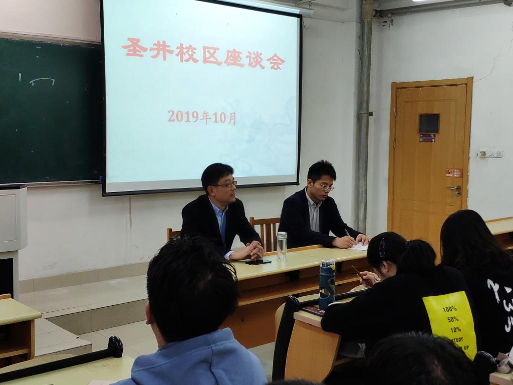 10�16日下午,经济学院党委书记姜伟到圣井校区召开调研座谈会,圣井校区2017级�2018级学生代表参加,会议�2017级辅导员朱海林主持�