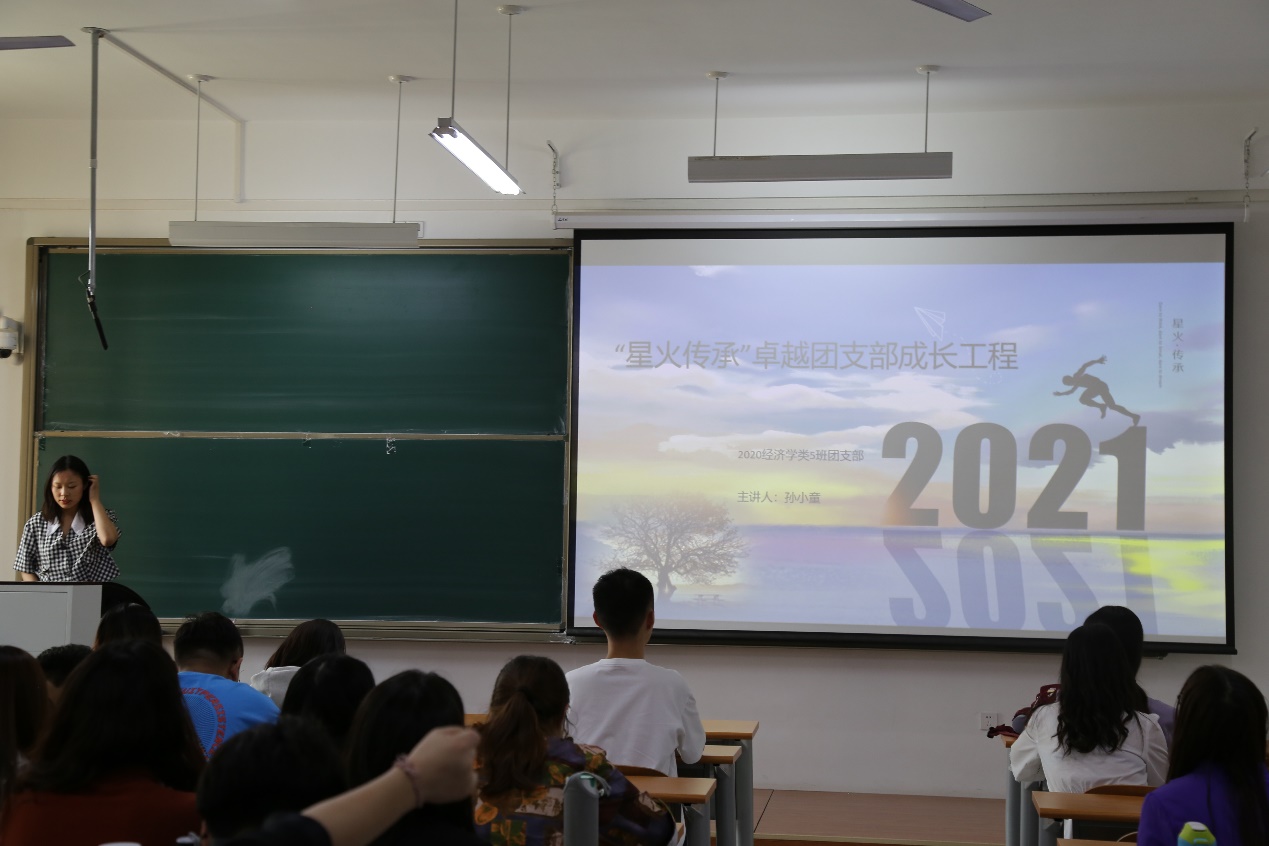获批学校2020年度卓越团支部结项的2018级经济学创新实验班�2018级经济学2班�2019级经济学1班�2019级国际化实验班和2020级经济学�5班五个团支部书记结合自身成长建设特色发展方向,将团支部建设经验进行分享交流。他们分别从思想政治引领、团务团建、网上共青团建设、团组织活动以及工作创新五个方面介绍团支部建设情况和经验心得,重点介绍了各团支部在学风建设、职业发展、创新创业、社会实践、志愿服务等特色发展情况,强调了团支部要在规范班子建设、深化思想政治引领,增强创新实践意识方面发挥引领作用,注重丰富活动载体,夯实组织建设,切实保障团支部的集体利益,切实提高团员思想理论水平和政治素质,激励同学向学向善、积极向党组织靠拢,发挥好支委会成员带头示范作用�
