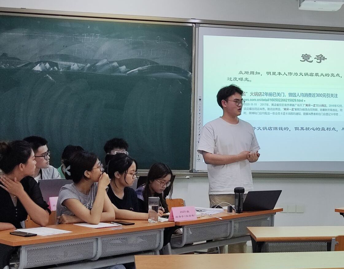 第一阶段双方选手围绕粉丝经济发展带来的机会和桎梏陈述观点,针对当前粉丝经济大行其道的现象分享建议�2019级经济学创新实验班的同学站在粉丝经济应援社会发展角度,从粉丝经济的定义、对社会经济的正向促进以及负面粉丝经济的问题三个方面陈述观点,指出在粉丝经济中应当扬长避短,抓住新机遇;2020级经济学创新实验班的同学则将粉丝经济的桎梏作为切入点,结合明星火锅店等案例,分别从资源、竞争、资金安全和企业的长短期发展四个角度展开论述,并进一步针对政府、明星以及粉丝提出了相关的改善建议。在自由讨论环节,双方选手根据对方见解提出质疑,深化对主题的理解,提出更加合理的解决方案�