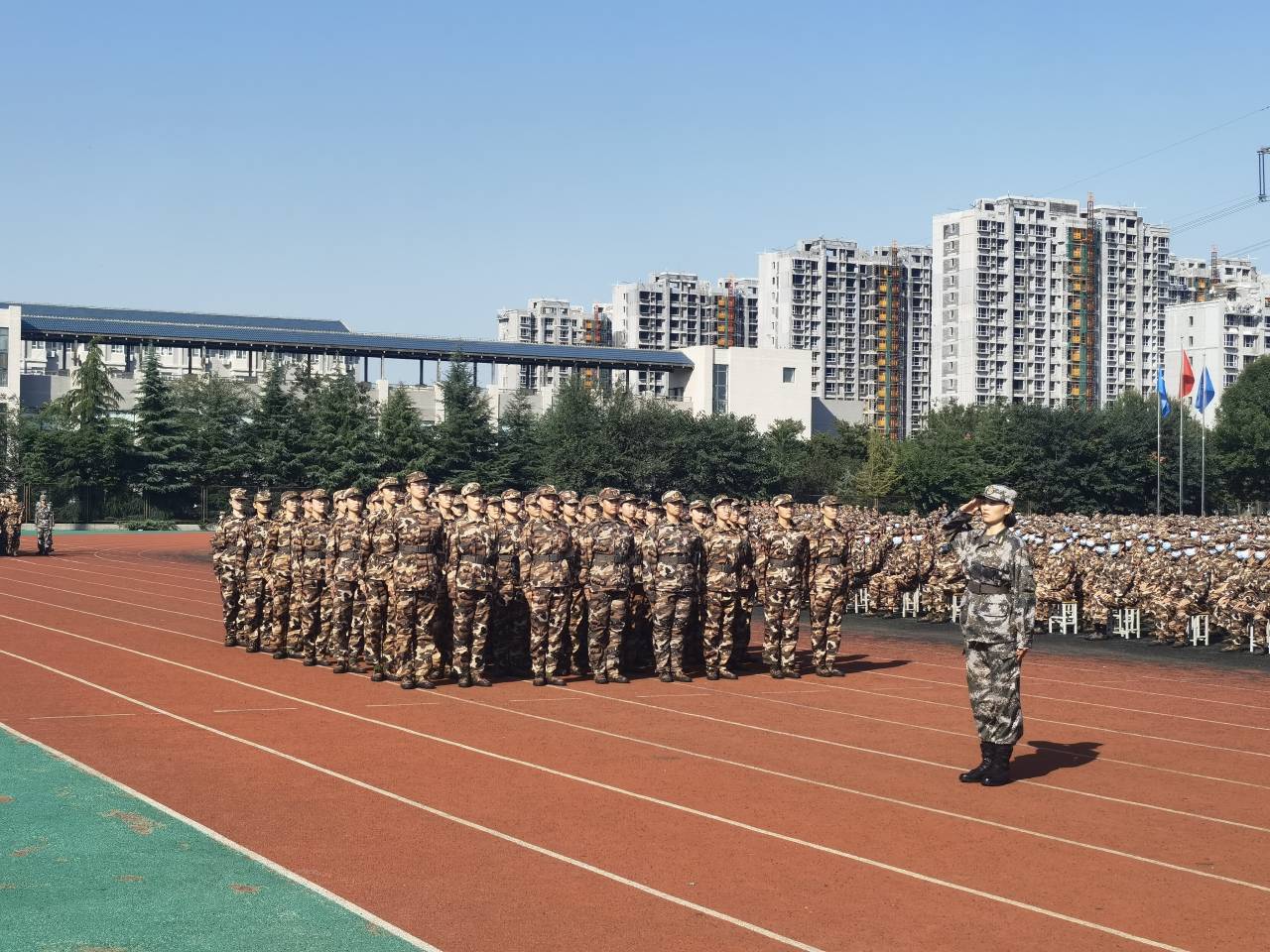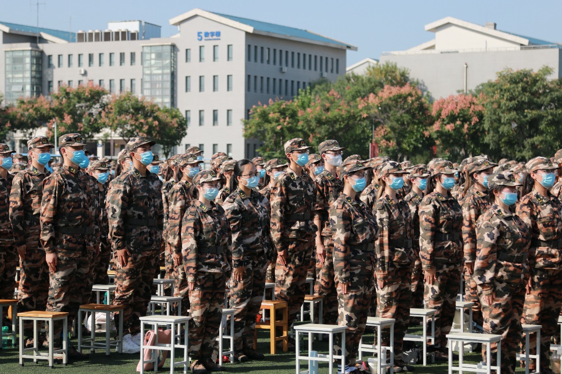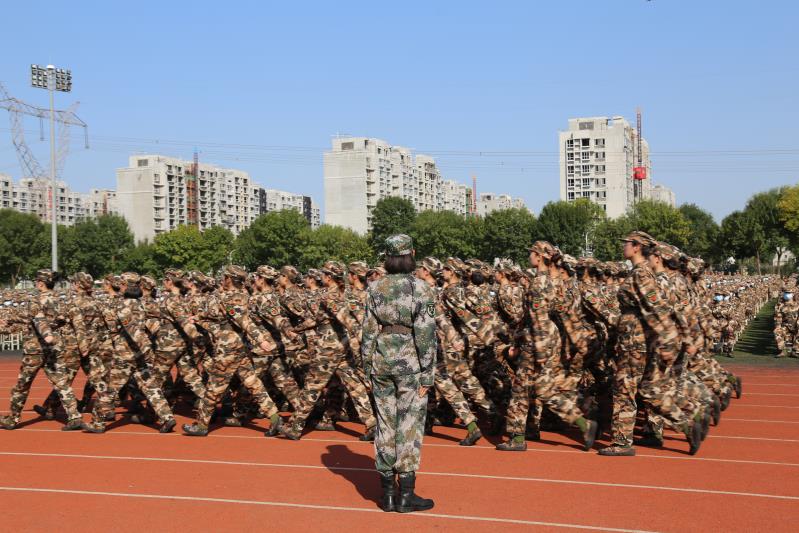 我院新生在圣井校区分为三个连队进行军训,同学们斗志昂扬、昂首阔步,展现了属于青年学生的意气风发,增强了国防意识,锻炼了吃苦耐劳的精神品格。我院党委副书记高峰、李冰封,学工办主任裴斐,团委书记付雯,党委专职组织员王琦,就业办主任、新生辅导员朱海林多次深入训练场地,检验训练成果,并且激励同学们勇往直前、坚守初心、顽强拼搏,勇于担当时代的重任�