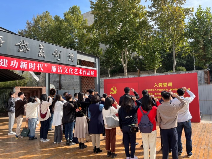 为贯彻落实习近平总书记关于廉洁文化建设的重要论述精神,深化学院党风廉政建设,进一步加强党员师生的廉洁意识,以实际行动迎接党的二十大胜利召开�10�13日上午,经济学院组织学院领导班子、办公室人员、党支部书记和纪检委员赴海岱美术馆参观校纪委举办的“廉洁文化艺术作品展”�