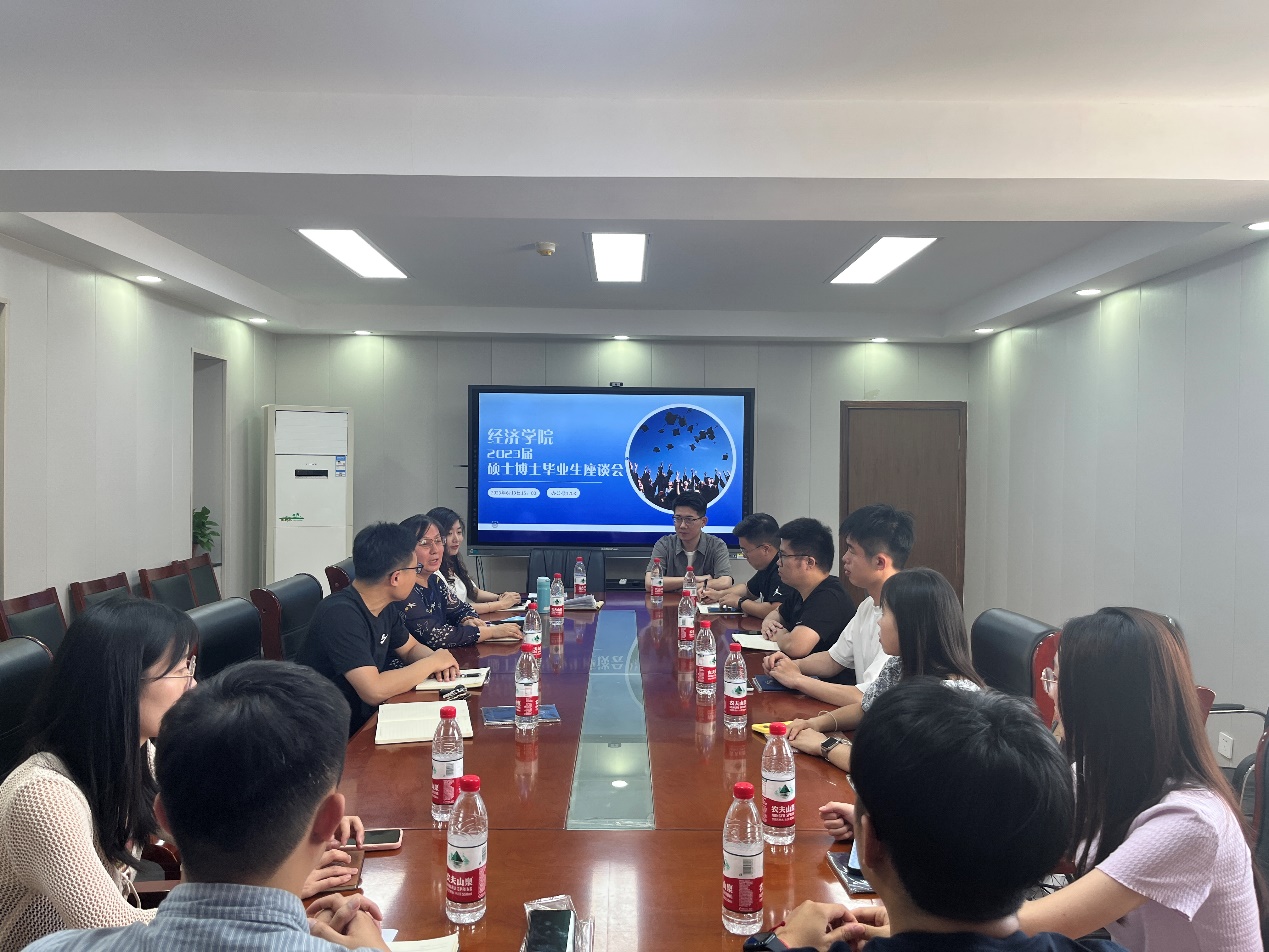 在交流过程中,领导老师们耐心倾听、认真记录,并对同学们的问题和困惑进行解答。陈静为毕业生们提出期望与祝福,希望同学们在今后的工作中,坚定理想信念,筑牢思想根基;坚守初心使命,厚植责任担当;恪守学术诚信,永葆清廉之心,并祝愿2023届全体硕士毕业生以梦为马,不负韶华,未来可期�