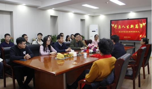 三位退休教师回顾了自己的教育生涯,分享了自己的成长、收获,向在座的同行们表达了对教育事业的热爱和对未来的美好祝愿。表示将继续关注学院发展,并为之发挥余热,也希望经济学院的未来更加辉煌�