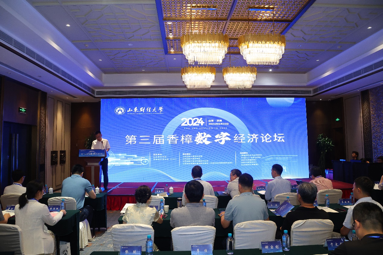 6�22日,第三届香樟数字经济论坛在我校举行。本届论坛由山东财经大学和香樟经济学论坛(CEC)主办,山东财经大学经济学院、山东财经大学科研处、山东财经大学学科建设办公室和山东省社科理论重点研究基地(习近平经济思想研究基地)联合承办。我校党委副书记谢申祥出席开幕式并致辞,开幕式由科研处处长马恩涛主持�