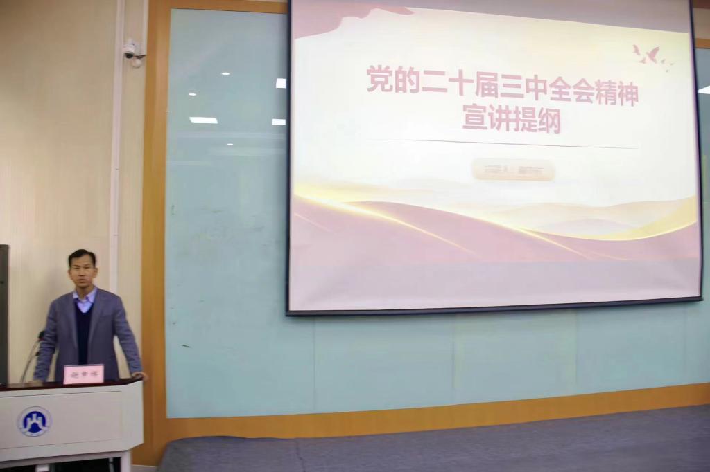 (通讯员:付雯 刘素清)10�29日,学校宣讲团成员、校党委副书记谢申祥到经济学院宣讲党的二十届三中全会精神。宣讲会在舜耕校区第三阶梯教室举行,经济学院党委书记姜伟主持�