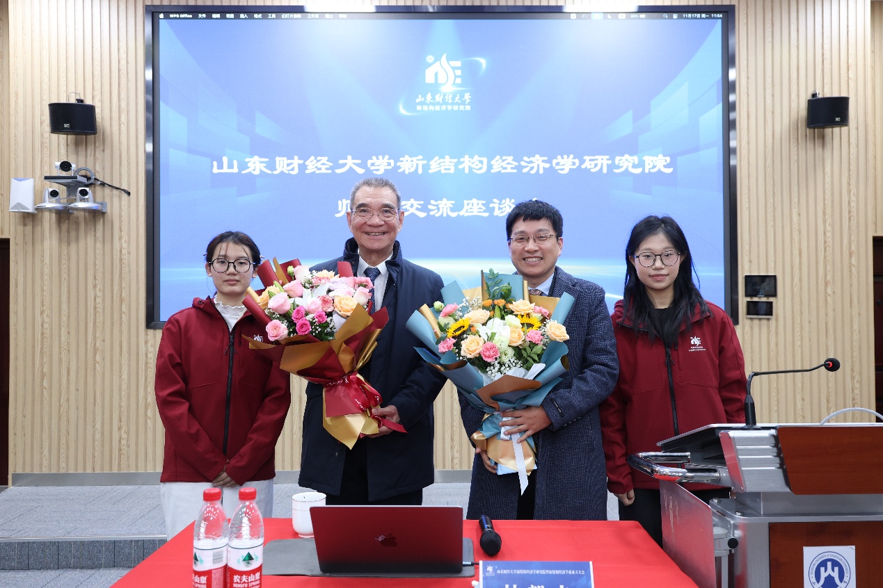 11�17日,著名经济学家、北京大学博雅讲席教授、北京大学国家发展研究院名誉院长、北京大学新结构经济学研究院院长林毅夫教授参加了我校新结构经济学卓越人才实验班的师生交流座谈会,北京大学新结构经济学研究院副院长王勇教授出席活动,座谈会由经济学院副院长张明志主持�