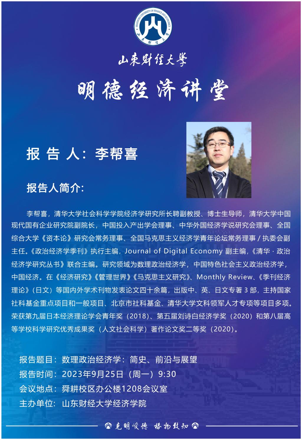 山东财经大学明德经济讲堂:数理政治经济学:简史、前沿与展望