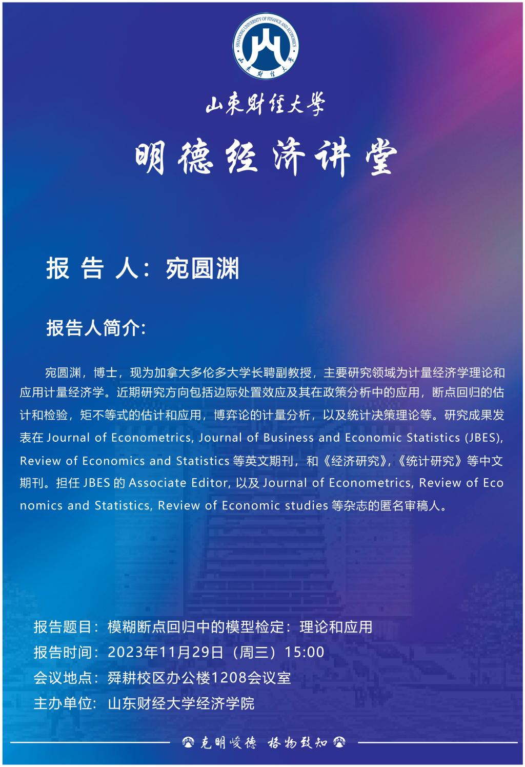 山东财经大学明德经济讲堂:模糊断点回归中的模型检� -- 理论和应�-山东财经大学经济学院 <#webadvjs#>